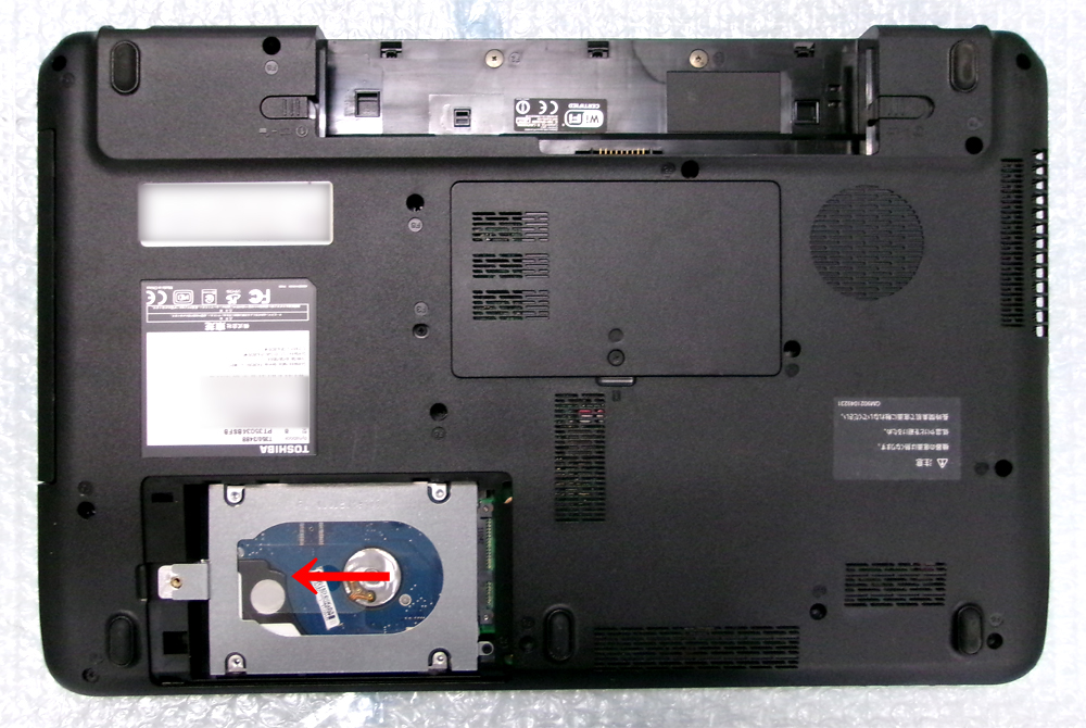 HDDを左方向へずらし、筐体から取り外します。