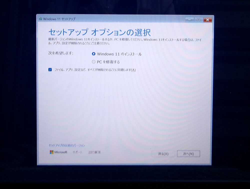 Windows11をUSBインストーラーからクリーンインストールします。