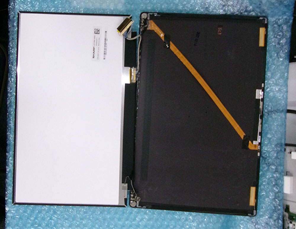 最近の液晶パネルは両面テープで貼り付けが多いのですが、今回はテープはなくそのままはめられているだけでした。