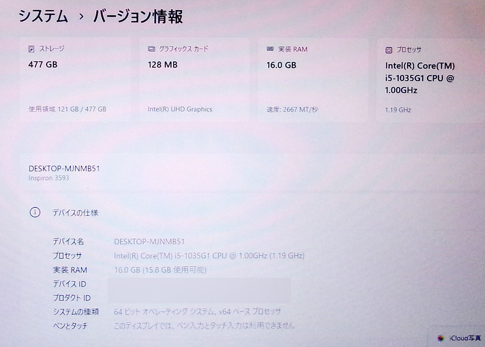 DELL Inspiron 3593 SSD容量交換・Windows11アップデート