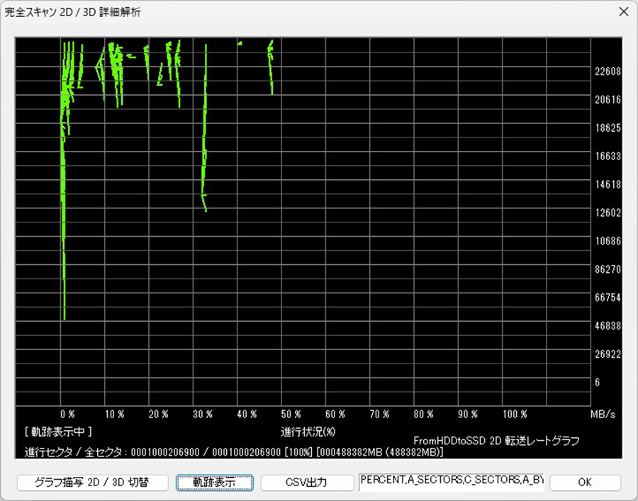 前半の3割程で大きくスピードが落ちているのがわかりました。