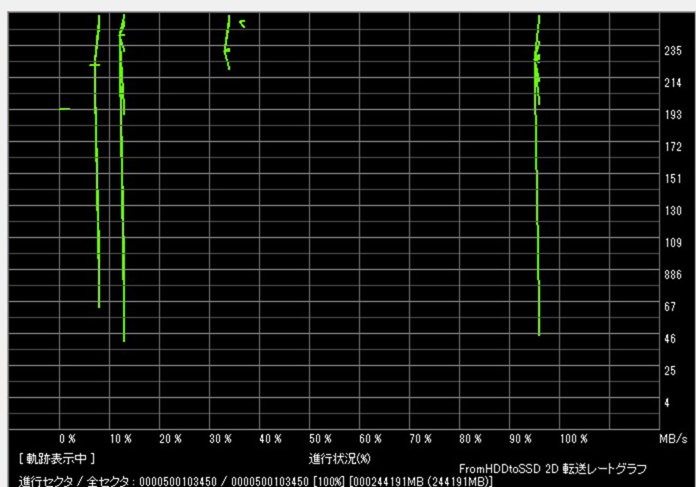 大きく乱れてはいませんが、ところどころ読み出しがほぼ止まる部分が見られました。