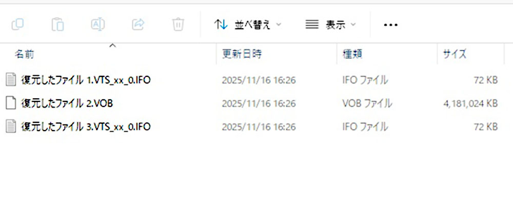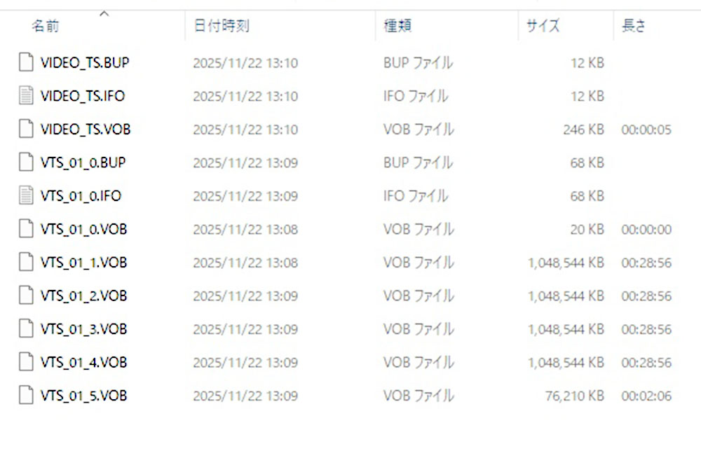 DVDビデオ形式では「VIDEO_TS」と「AUDIO_TS」のフォルダーができます。