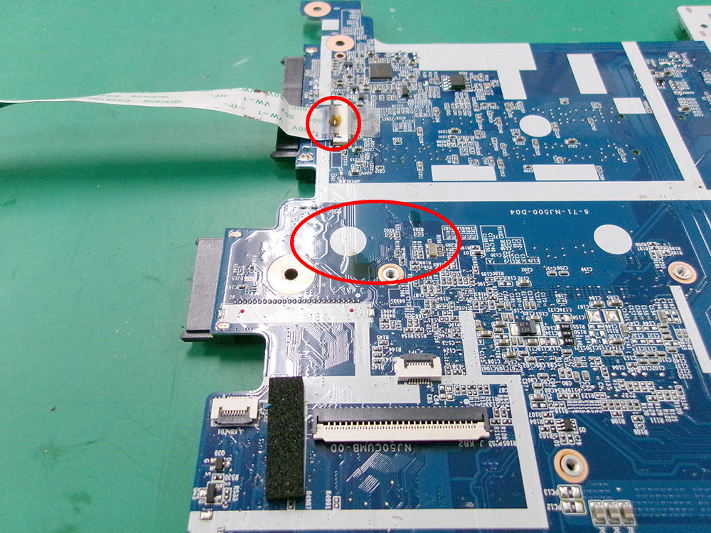 マザーボードを取り外したところ、キーボード下側にまだ濡れたままのところがありました。