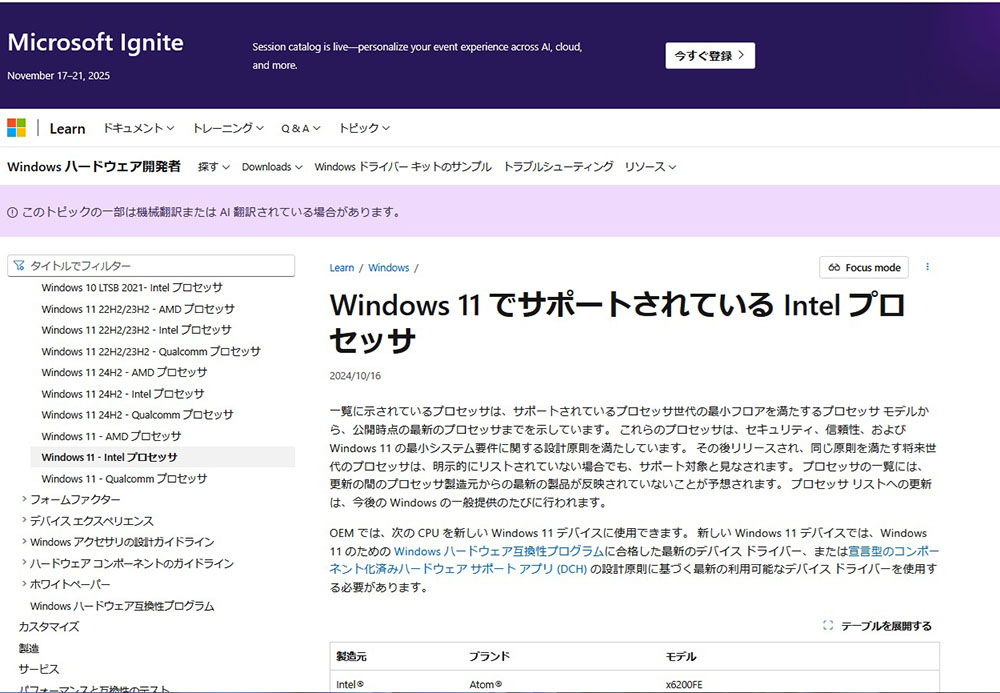 この表に乗っていないCPU搭載のパソコンはWindows11には非対応です。